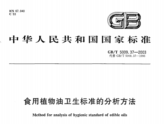 GB/T5009.37-2003食用植物油衛(wèi)生標(biāo)準(zhǔn)的分析方法 GB/T5009.37-2003食用植物油衛(wèi)生標(biāo)準(zhǔn)的分析方法 代替GB/T5009.37-1996... 更新日期:2020-05-09 下載包(1)