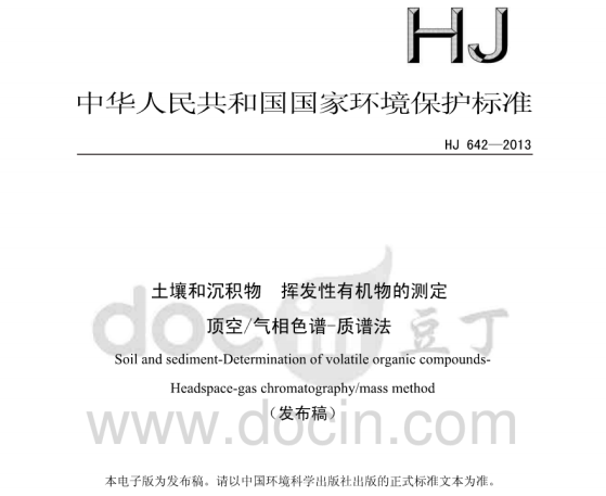 HJ642-2013土壤和沉積物揮發(fā)性有機物的測定頂空氣相色譜—質(zhì)譜法 揮發(fā)性有機物(VOCs)是指沸點在50-250 C 范圍內(nèi)的一系列化合物,因其廣泛應(yīng)用于化工原料和有... 更新日期:2020-05-29 下載包(1)
