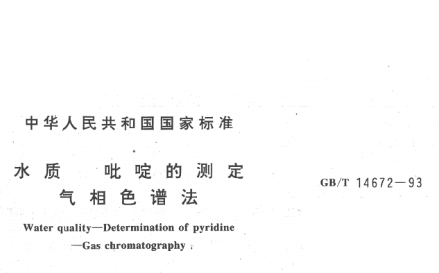 GB/T 14672-93 水質 吡啶的測定 氣相色譜法 GB/T 14672-93 水質 吡啶的測定 氣相色譜法1 主題內容與適用范圍? ? ? 本標準規定... 更新日期:2020-05-09 下載包(1) 下載包(2)